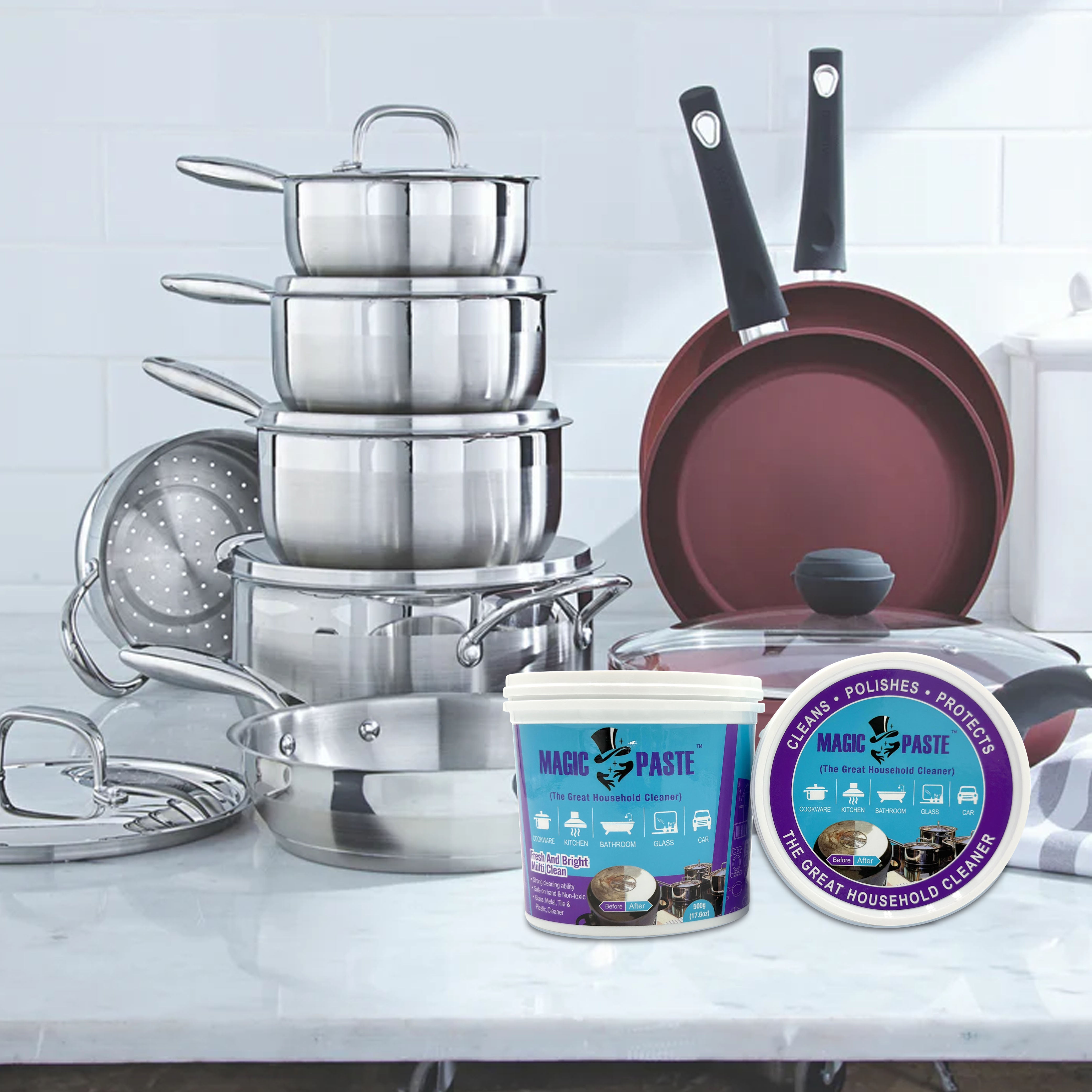 Magic Cleaning Paste, it’s usually a multi-purpose cleaning paste made from baking soda, soap, and sometimes clay or other mild abrasives. It’s popular for cleaning tough stains on kitchen surfaces, pots and pans, and even tiles.